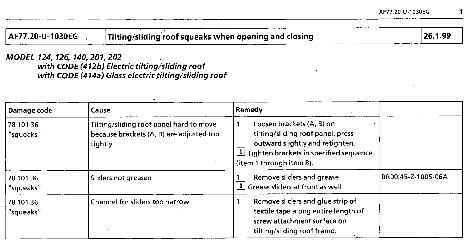 Tilting/Sliding Roof Squeaks When Operating