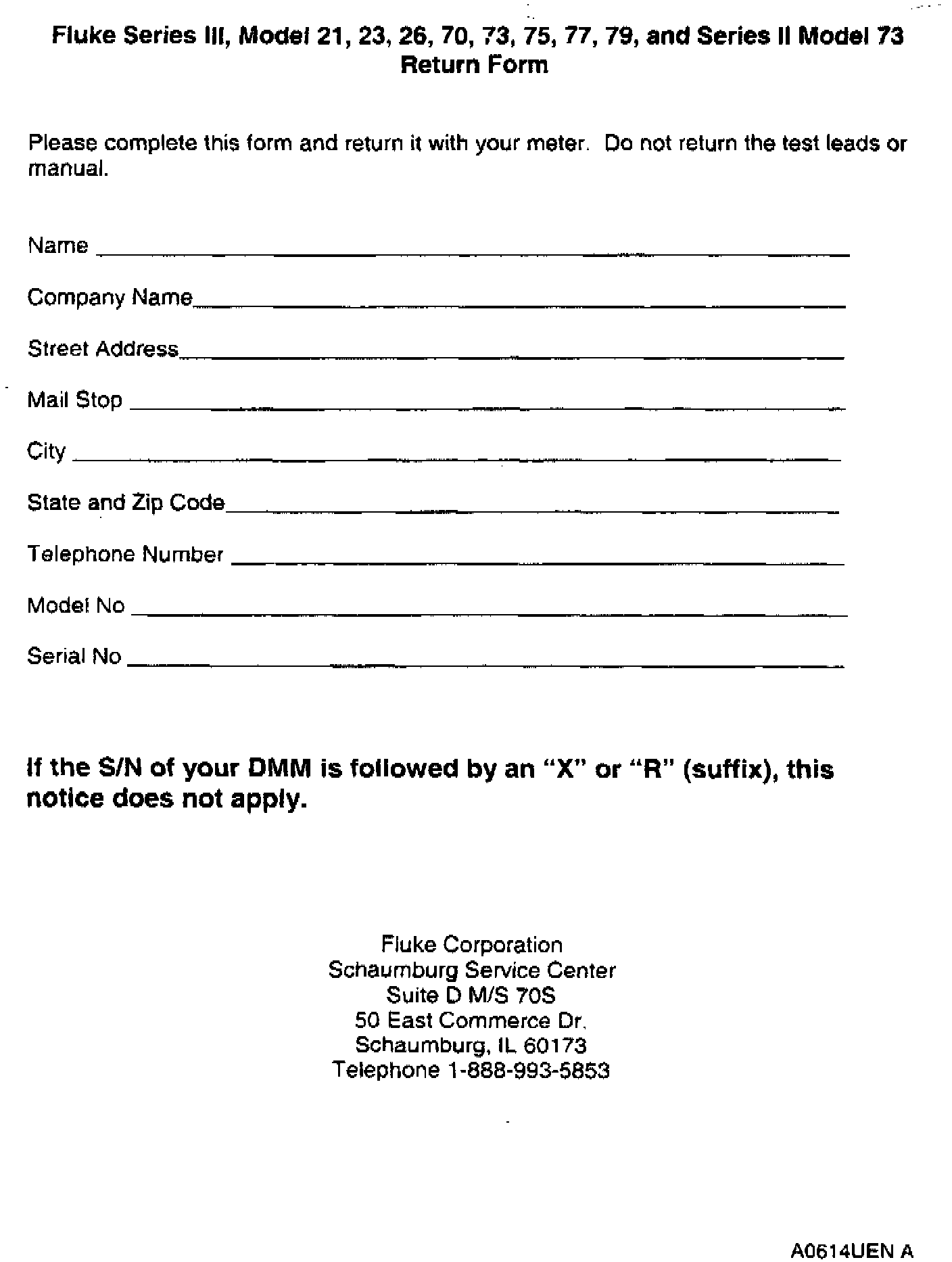 Please complete the form and return it with your meter. Do not return the test leads or manual.