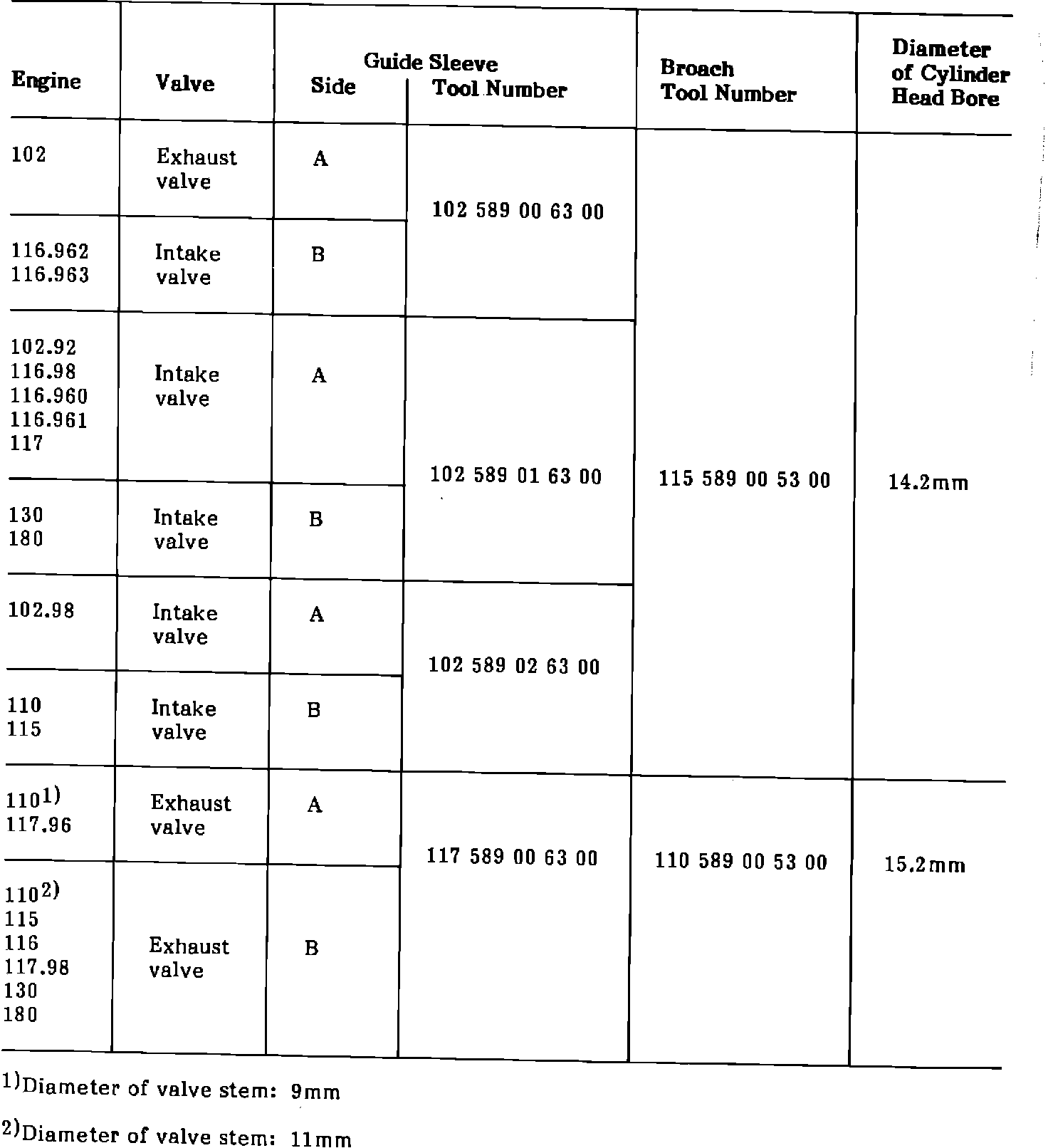 Table 1: Guide Sleeve and Broach Combinations Depending on Engine Type