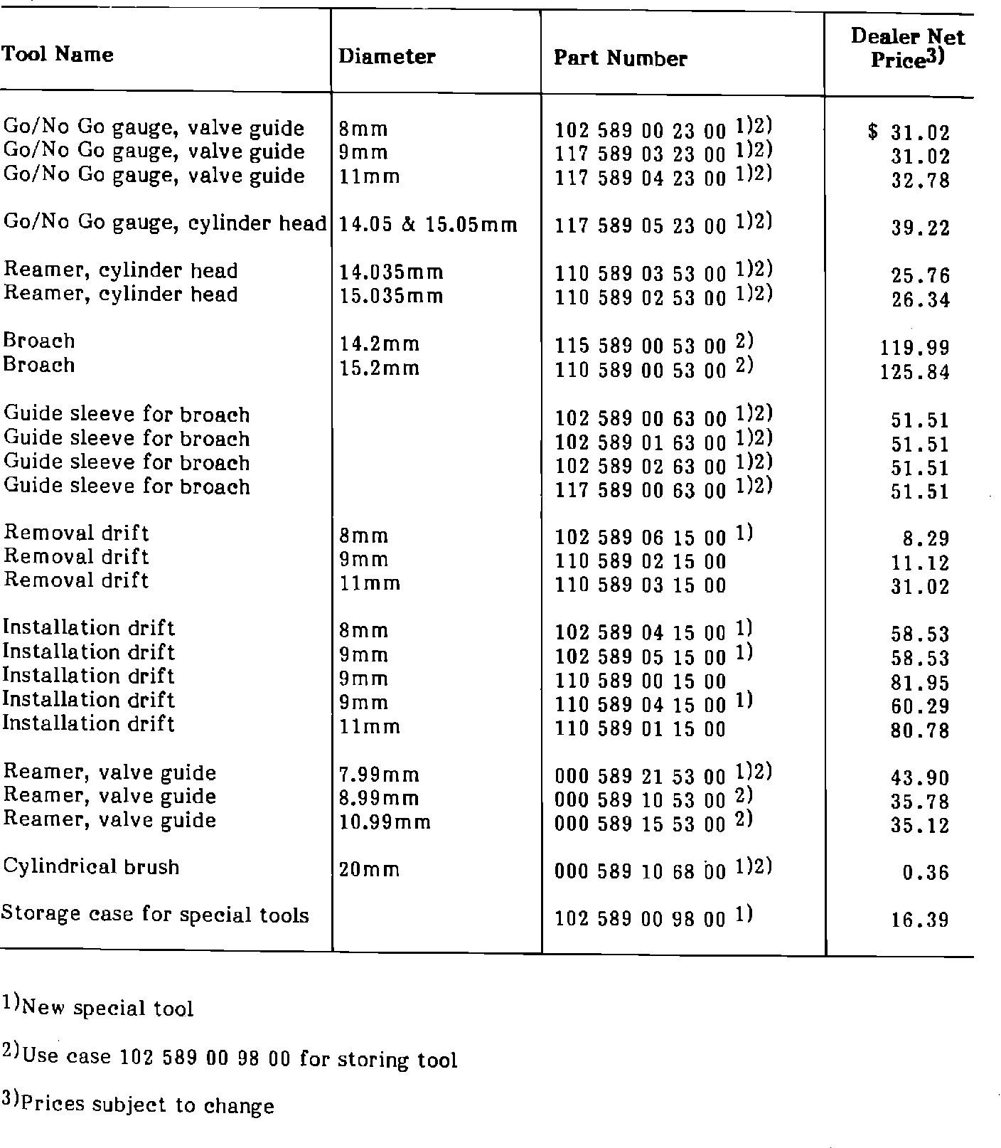 Table 2: Special Tools Depending on Engine Type