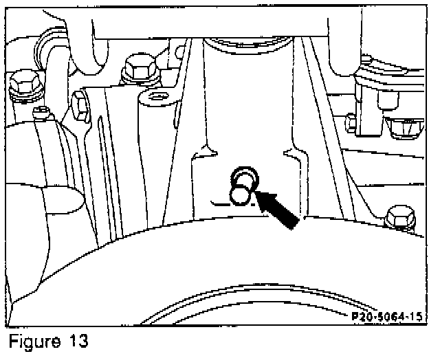 3. Apply sealant/locker to fitting (arrow, Figure 13) and tap it into the lower vent bore of the coolant pump with a suitable mandrel.