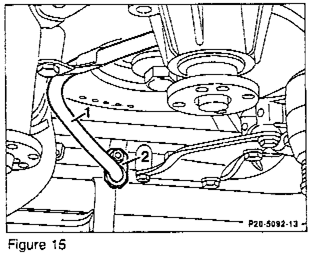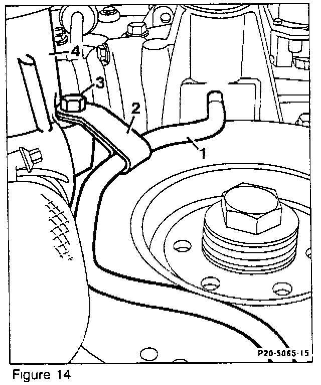 6. Attach the drainage pipe (1, Figure 15) at the lower oil pan with the bracket (2) and position correctly.