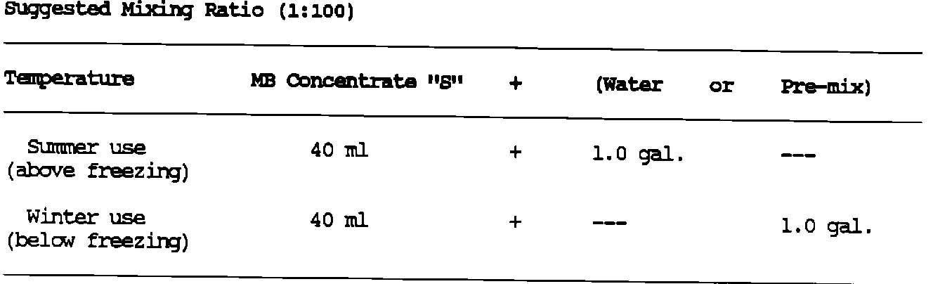 SUBJECT: MIXING OF WINDSHIELD WASHER SOLUTIONS WITH M-B CONCENTRATE "S"