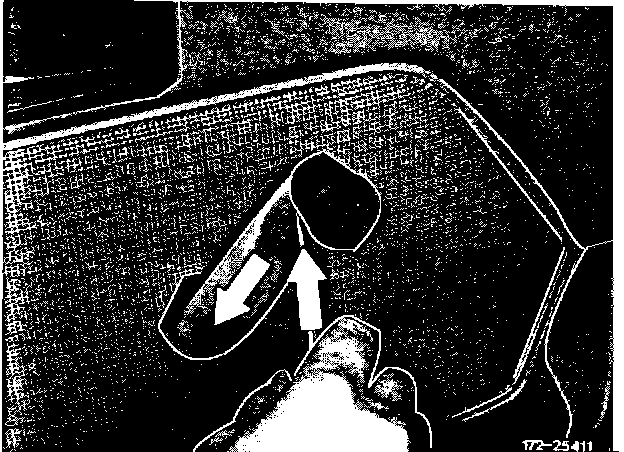 To remove, push down with screwdriver on the locking tab and over in direction of window crank axle (Figure 2, arrows).
