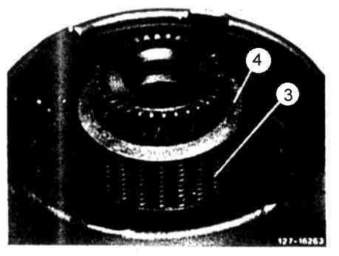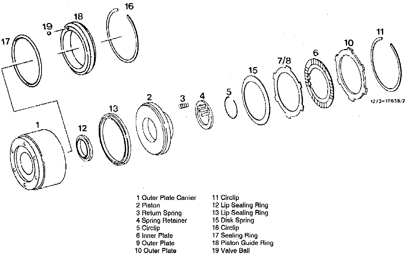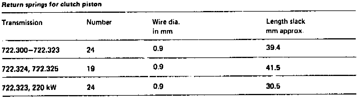 Note: Check O-ring between outside plate carrier and piston guide ring for leaks, fill a small quantity of kerosene or benzine into piston guide ring. Then check whether the fluid is flowing off. In the event of leaks, replace outside plate carrier except transmission 722.323 220 kW and 722.324/325.