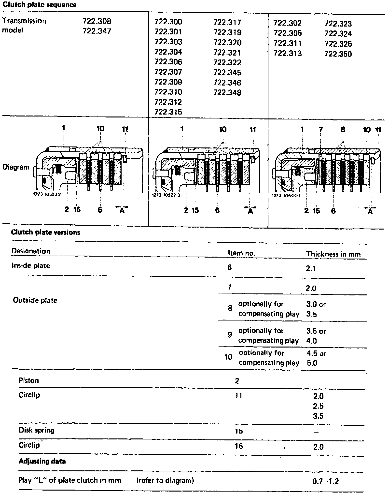 Pay attention to clutch plate sequence. Assemble clutch package according to transmission model designation.