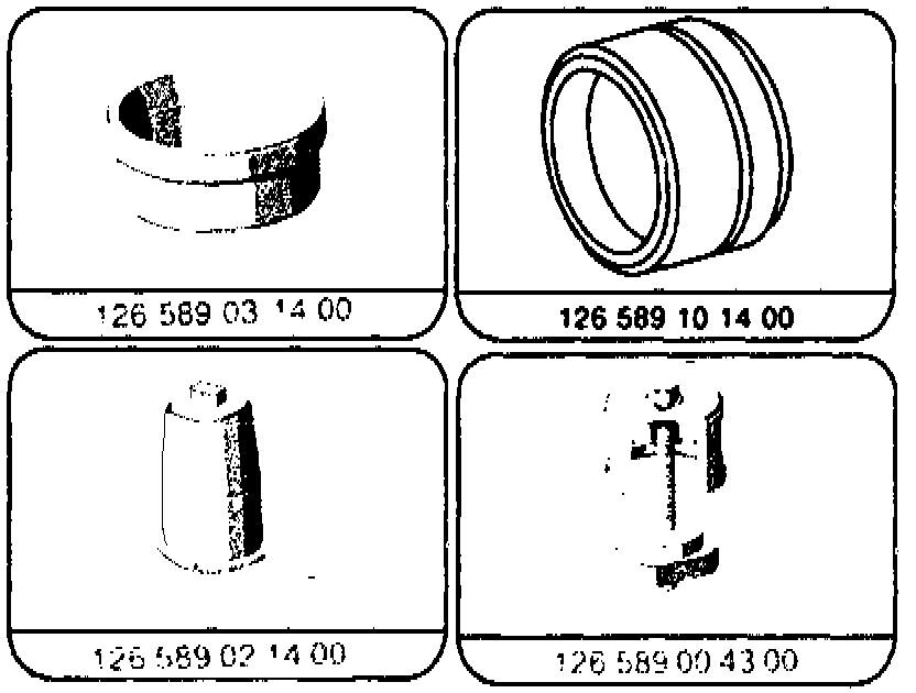 NOTE: On insertion sleeves of 1st production run, remove beaded edge for approx. 5 mm on lathe so that the insertion sleeve rests on piston guide ring. Installation sleeves 126 589 03 14 00, 126 589 10 14 00 and 126 589 02 14 00.