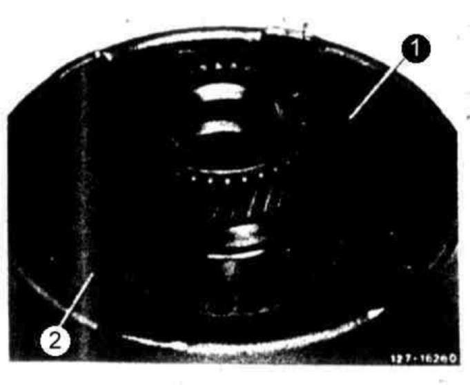 10 Carefully install piston (2) and push into outside plate carrier (1) without canting.
