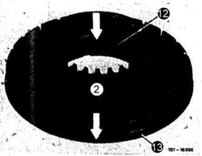 7 Insert lip sealing rings (12 and 13) into piston (2) in such a manner that the sealing lips are pointing downwards (direction of arrow).