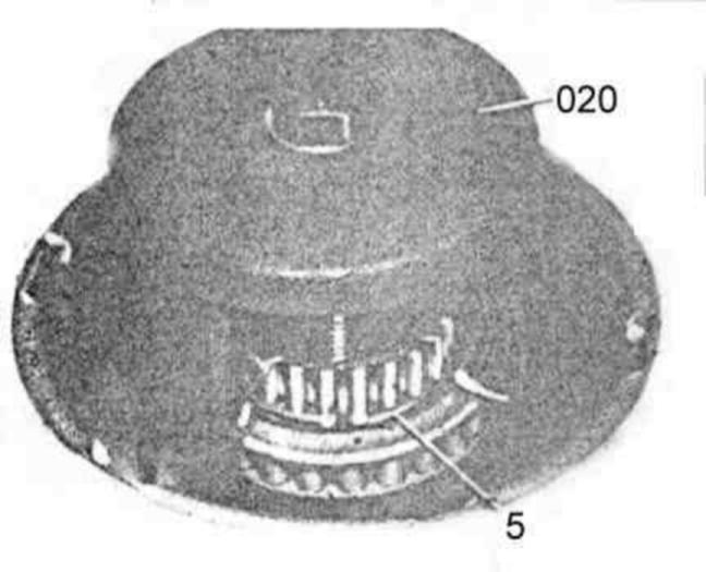 3 Place assembly device (020) on spring retainer and tension until circlip (5) is exposed. Remove circlip (5). Release assembly fixture 126 589 02 14 00 and remove.