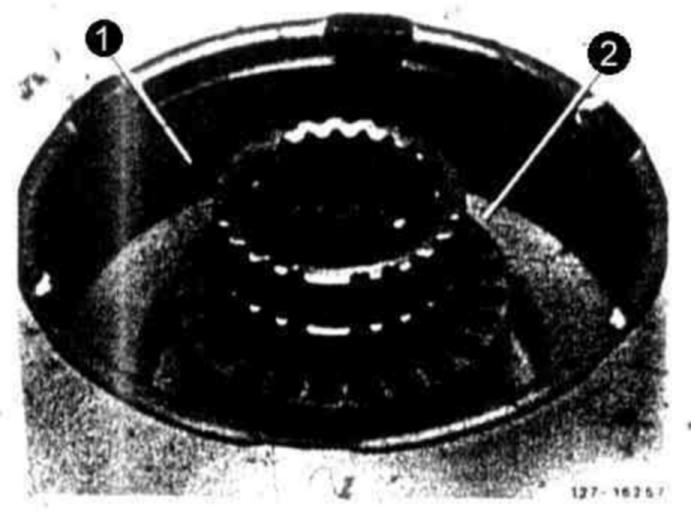 NOTE: Check O-ring between outside plate carrier and piston guide ring for leaks. For this purpose, fill some kerosene or benzine into piston guide ring. Then watch whether fluid flows off. In the event of leaks, replace outside plate carrier.