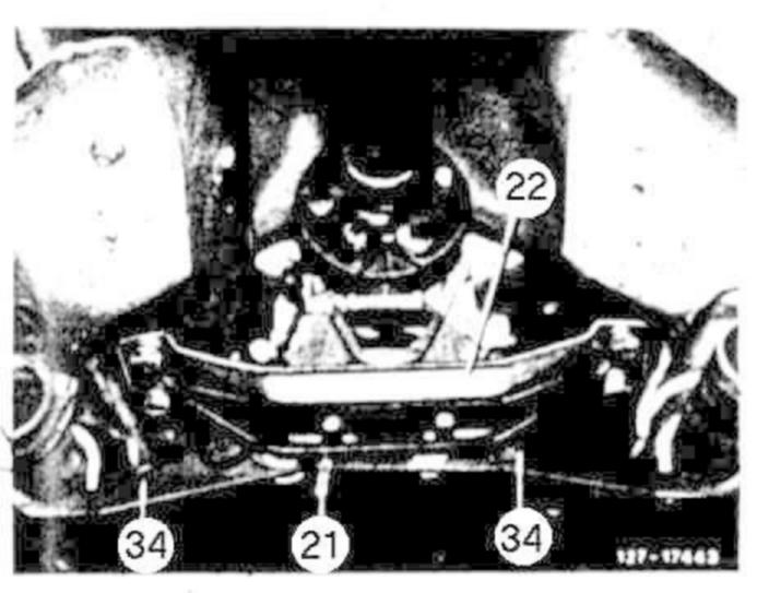 5 Remove cross beam (22) together with rear engine mount.