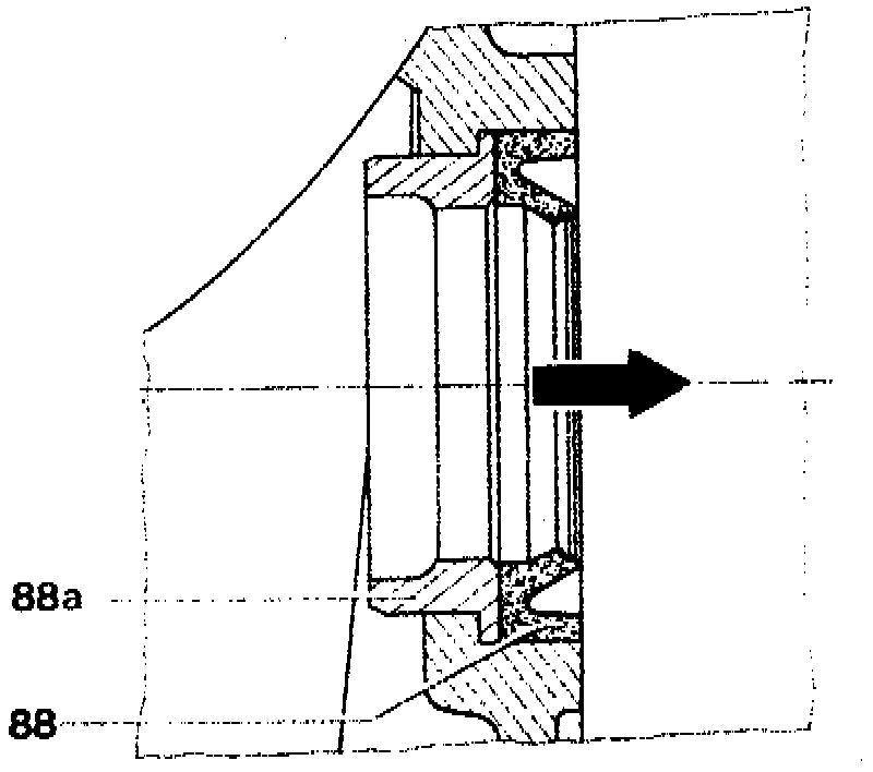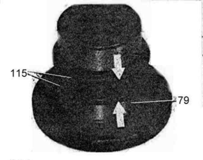 66 Provide grooves in supporting flange K 2 (79) with grease. Insert Teflon rings (115) and push into grooves to the extent that the gap (arrows) remains together.