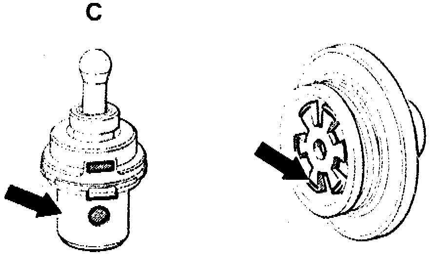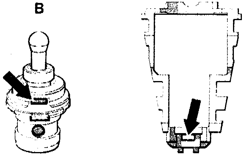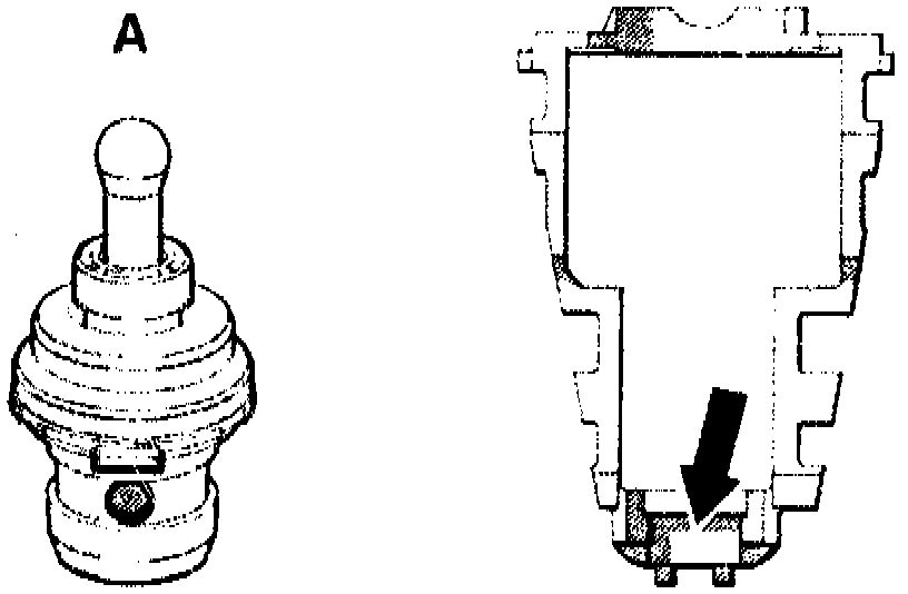 NOTE: Thrust body with groove (arrow) is installed in transmissions with shift valve housing 2nd version. Except for transmission 722.308 where the thrust body with groove is installed already on shift valve housing 1st version.
