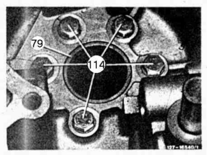 79 Insert damping spring (134), install starting transmission end No. 379225.
