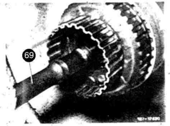 76 Place transmission in vertical position with input shaft (69) in upward direction.