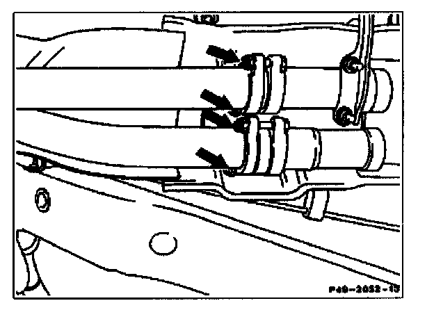 2. Remove exhaust system beginning at inserted connection (arrows).