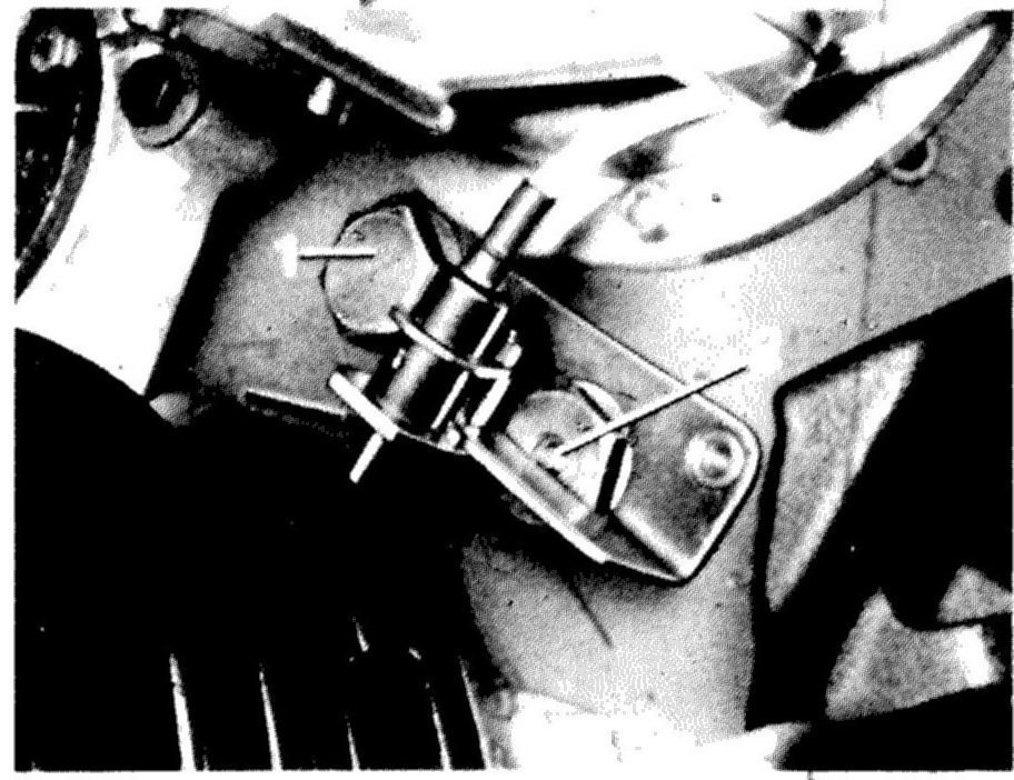 1 Disconnect regulating linkage to remove cylinder head cover. Pull out locking eye of longitudinal regulating shaft (arrow).
