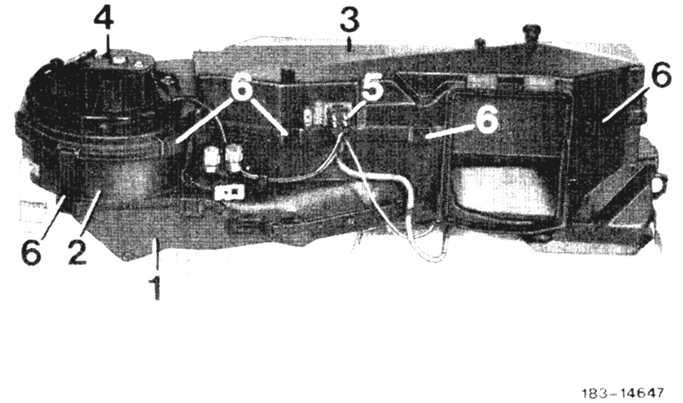 4. Remove clamps (6) between evaporator housing bottom and center section.