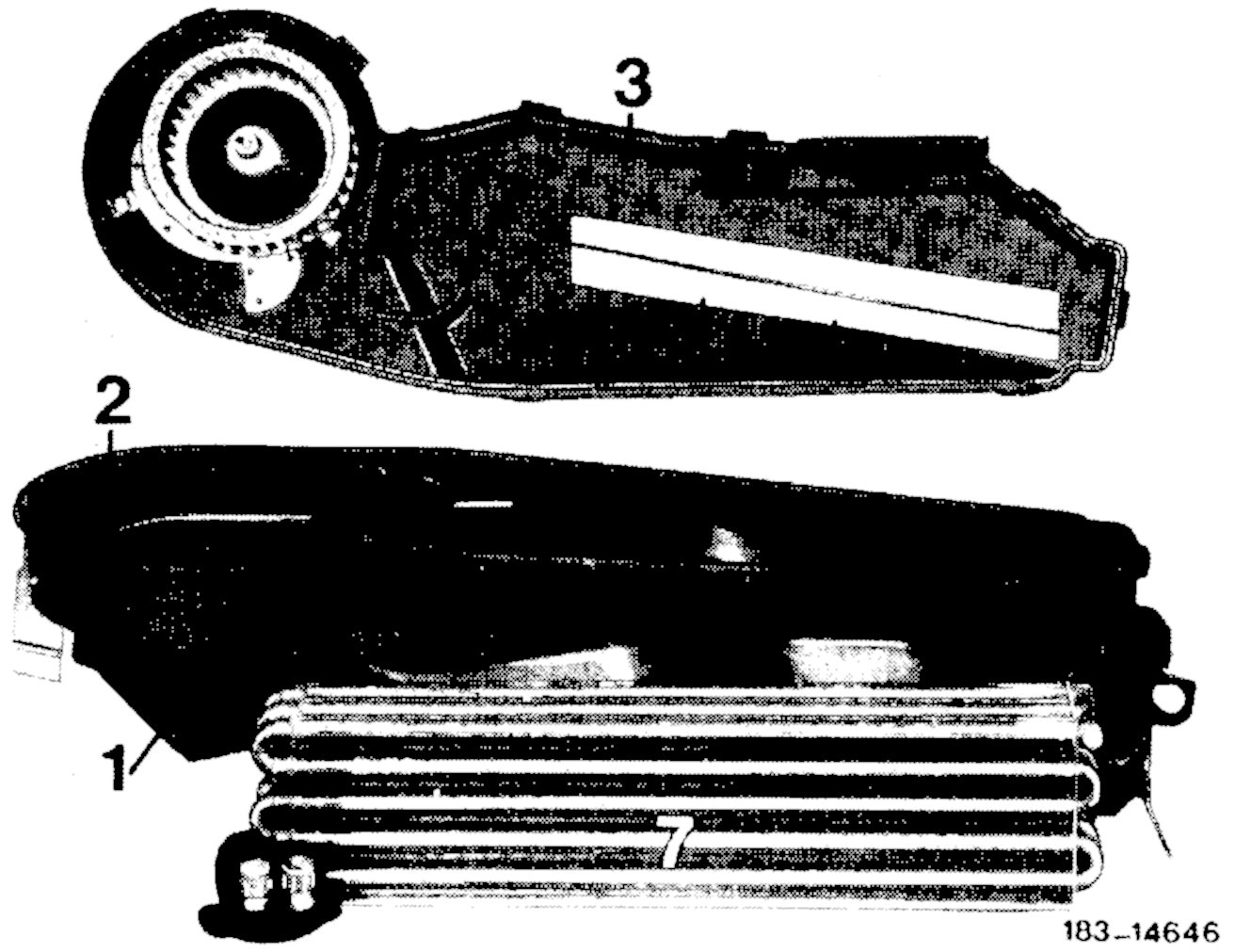 5. Take off evaporator housing lower half (3) and remove evaporator.