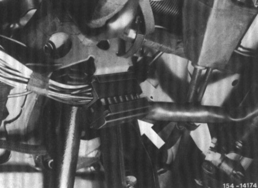 5 Pull off 14-point plug (arrow) and remove combination switch.
