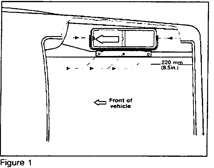 3. Place the mounting bracket (2, Figure 2) on the edge of the rail of the wheel well so that the edge of the bracket is 220 mm (8.5 in.) from the rear panel of the trunk (Figure 1). Mark the location of two horizontal and three vertical mounting holes, center punch the markings and drill 5 mm holes (Figure 2).