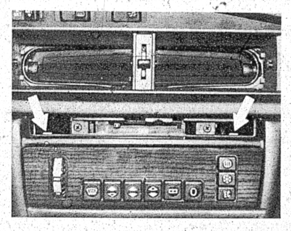 5 Lift both clamps (arrow) with a pointed tool and pull out complete pushbutton switch unit.