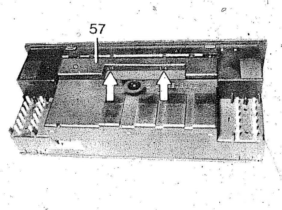 1 Remove cover (57) in upward direction, while pushing against both hooks (arrow).