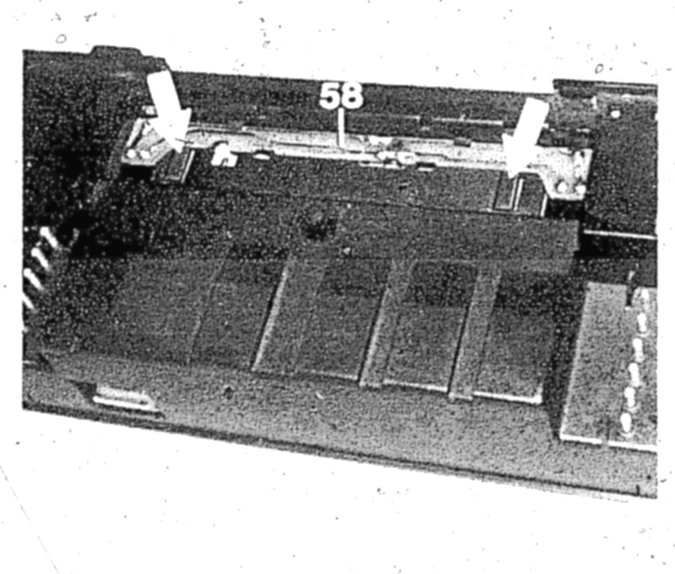 2 Push both engaging lugs (arrow) slightly down and pull lamp socket (58) out to the rear. Then remove bulbs from lamp socket.