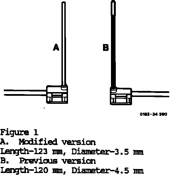 As of June 1987 production, a longer, modified temperature sensor with a smaller diameter probe was installed (A, Figure 1).