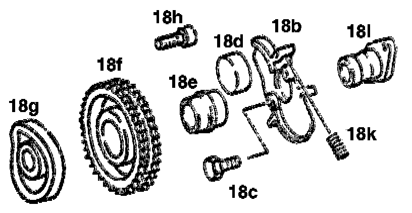 - Pull off segment flange (18b) at sprocket (18f). Take off compression springs (18k) and governor weights (18d). Examine parts for wear, replace if necessary.