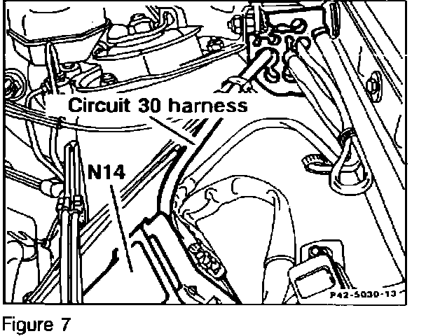 2. Disconnect circuit 30 wire (4 sq.mm) from preglow time-limit relay module (N14) (Figure 7).