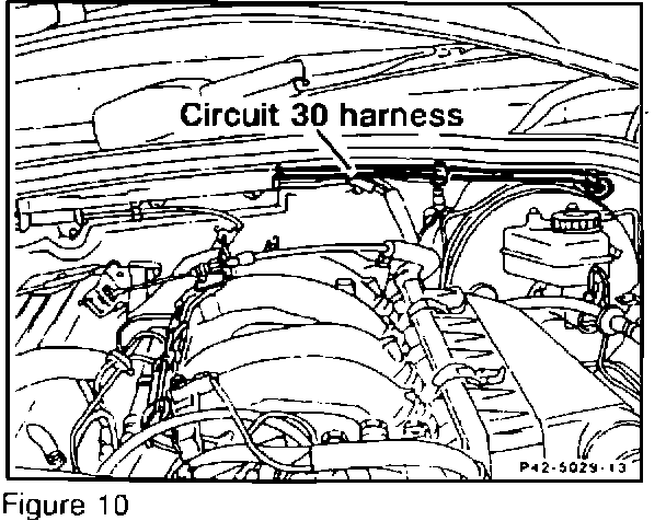 9. Route wire through grommet above brake booster, alongside the starter wiring harness, across the engine compartment (Figure 10).