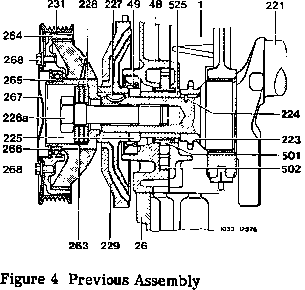 6. Unscrew bolt (226a) and remove pulley (231) with pulley coupling (263-266) and vibration damper (229) (Figure 4).