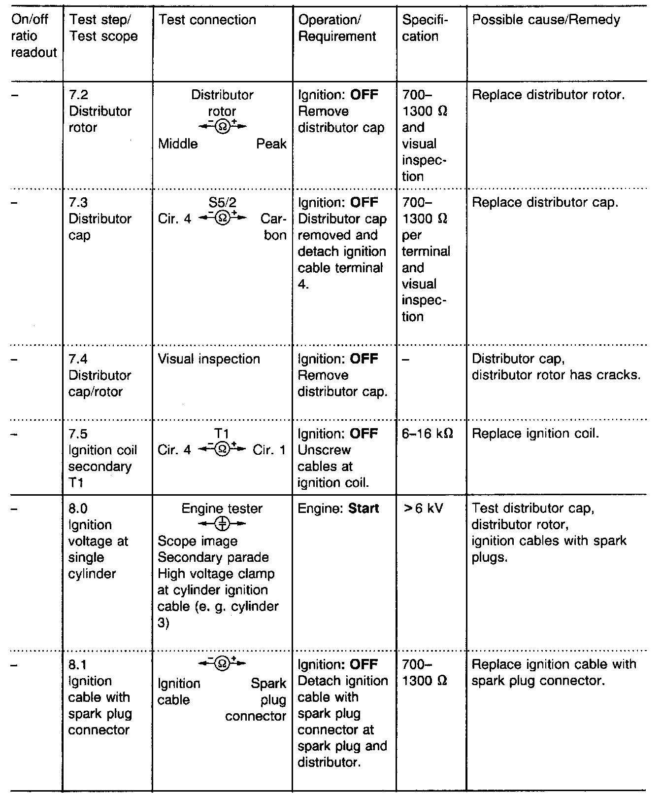 Test e.g. by visual inspection, measuring resistance and ignition oscilloscope.
