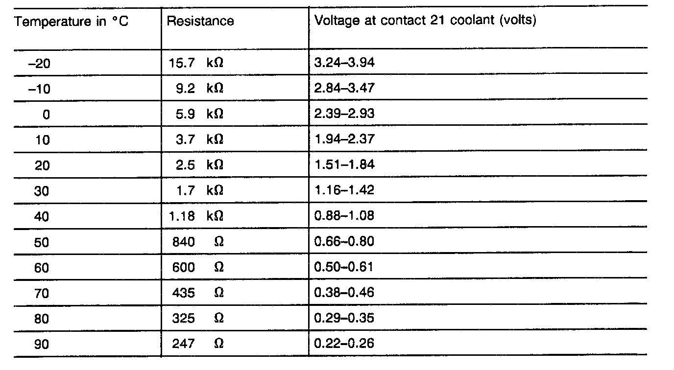 I) Table of voltage values for engine coolant temperature sensorNote: