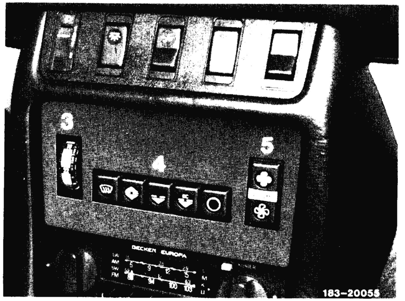 The blower switch (5) is located in the center console on the right side of push-button control unit.