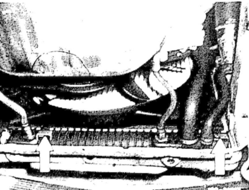 NOTE: On model 116, for positioning righthand holder (driving direction), unscrew intake scoop (arrow) and screw on again after fastening radiator.