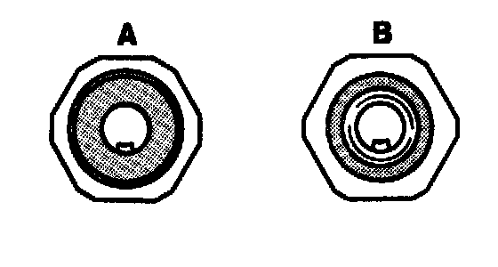 Punched valve spring retainers (B) are installed instead of cold flow molding valve spring retainers (A). The punched valve spring retainer is recognized by the narrow guide ring for valve spring (B, dotted surface).