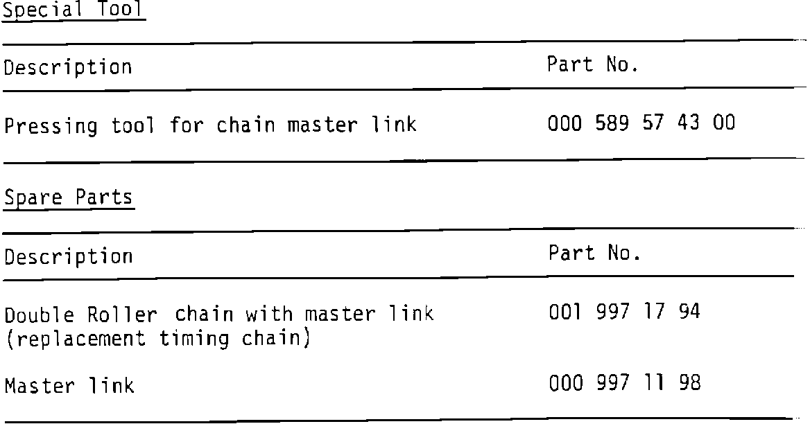 For the above diesel engines, the material for the spare-part timing chain and master link has been changed. When installing the modified chain, a special tool (fig. 3) is required to press the master connecting link plate onto the chain link (previously inserted by hand).