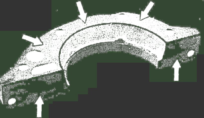 6 Coat all sealing surfaces with sealing compound, part No. 001 989 29 20 (arrows).