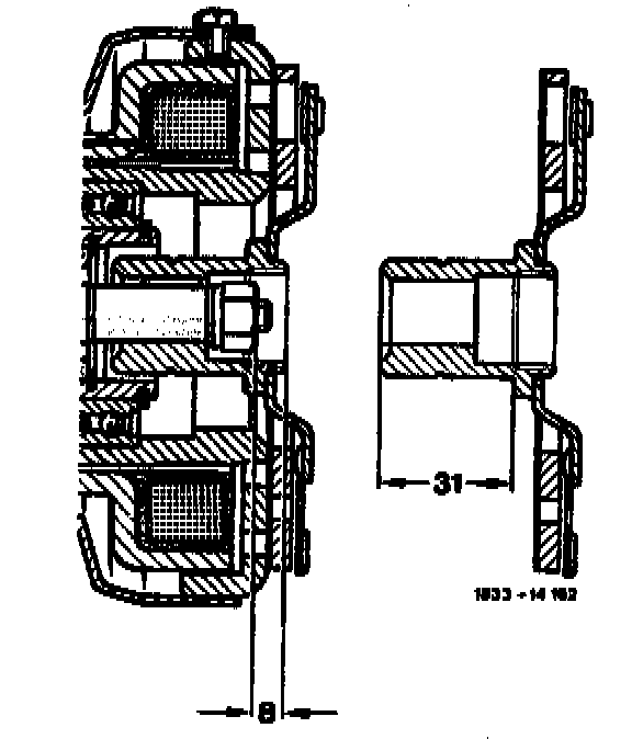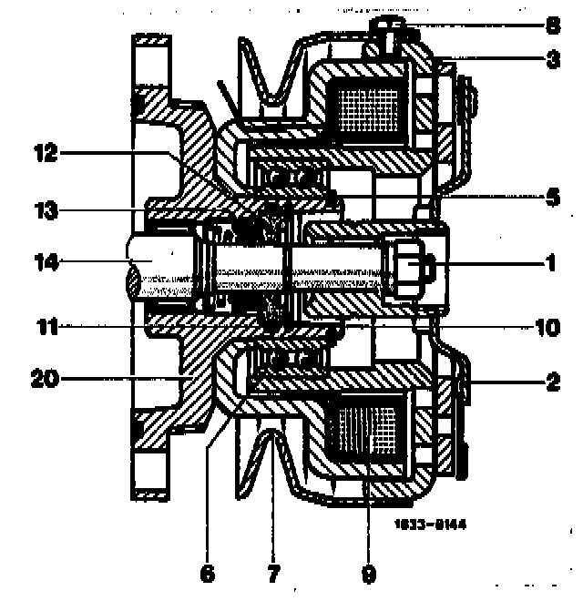 The clutch body forms a single assembly together with bearing, pulley and magnetic coil. If one component of this assembly group must be replaced, remove the complete assembly group.