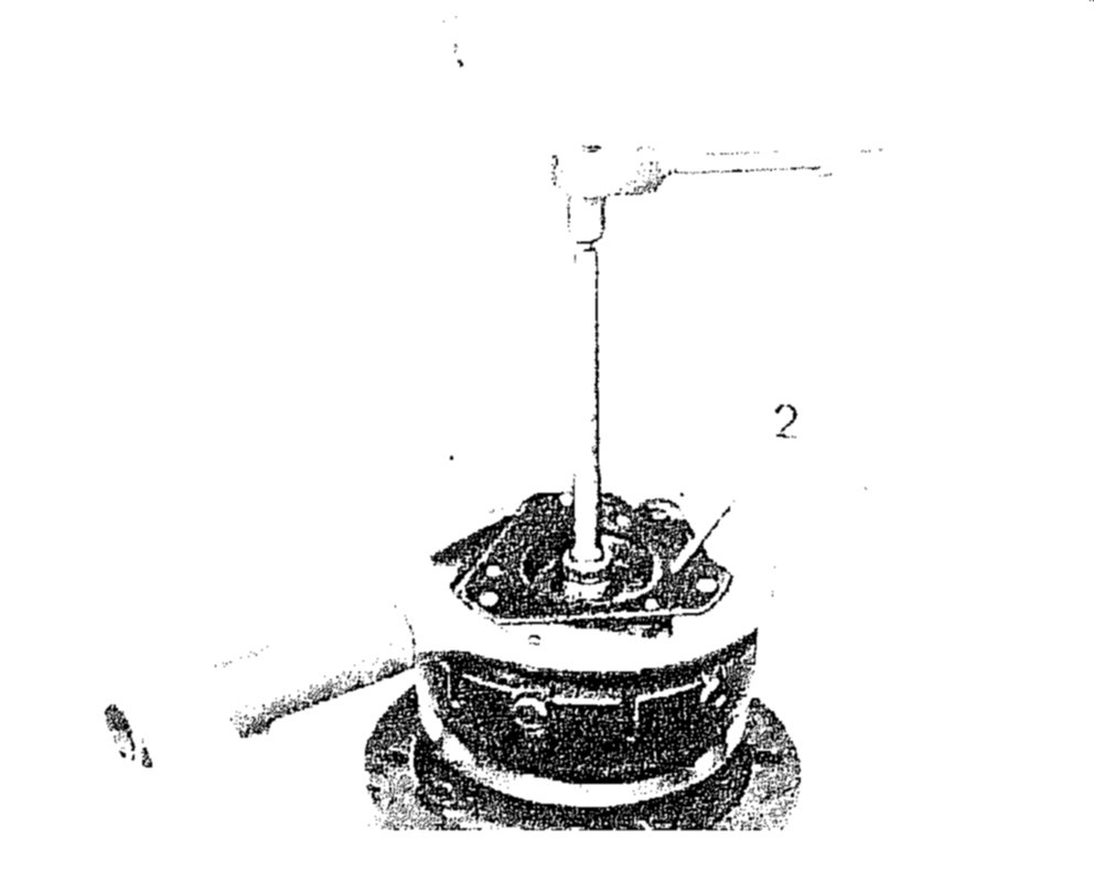 4. Turn wrench to prevent the spring plate (2) from turning, unscrew nut from shaft with 14 mm socket.