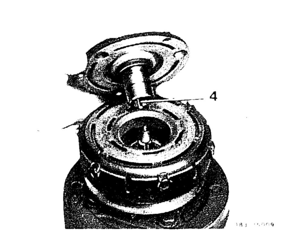 6. To install the spring plate. place bearing (c) on the spring plate. Retain belt (a) with a wrench and turn in threaded sleeve (b) until the clearance between the friction surfaces of the spring plate and the clutch body is approx. 0.5 to 1 mm.
