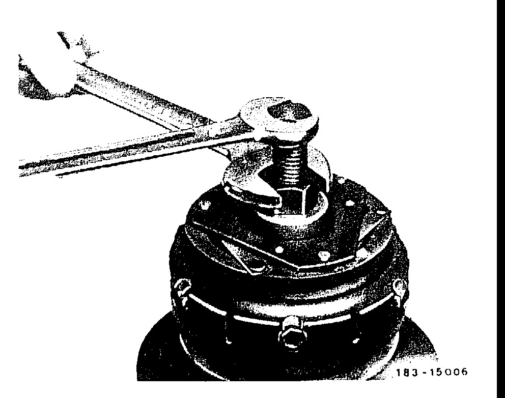 11. Hold the hexagon head of the tool and screw in the center bolt until the clearance between spring plate and clutch body is approx. 0.5-1 mm.