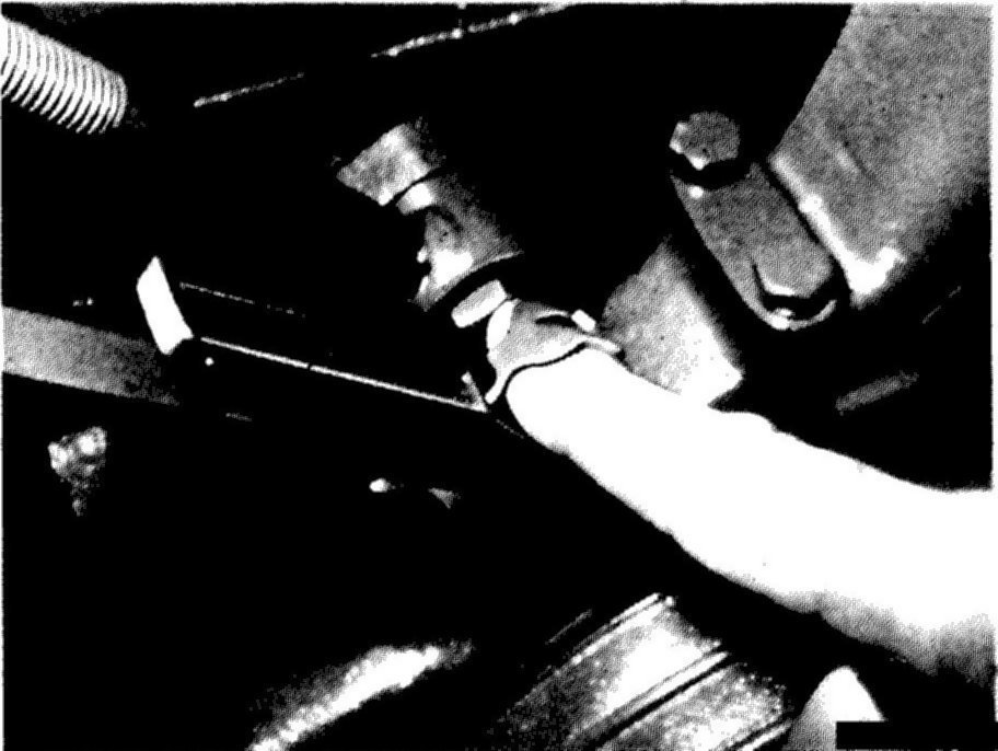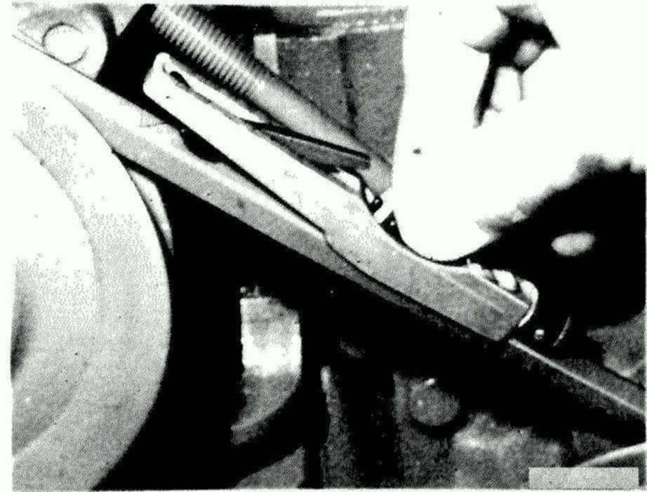 3 Exert a uniform, vertical pressure on V-belt upper surface by means of pushbutton, until click spring is audibly (or noticeably) disengaging.
