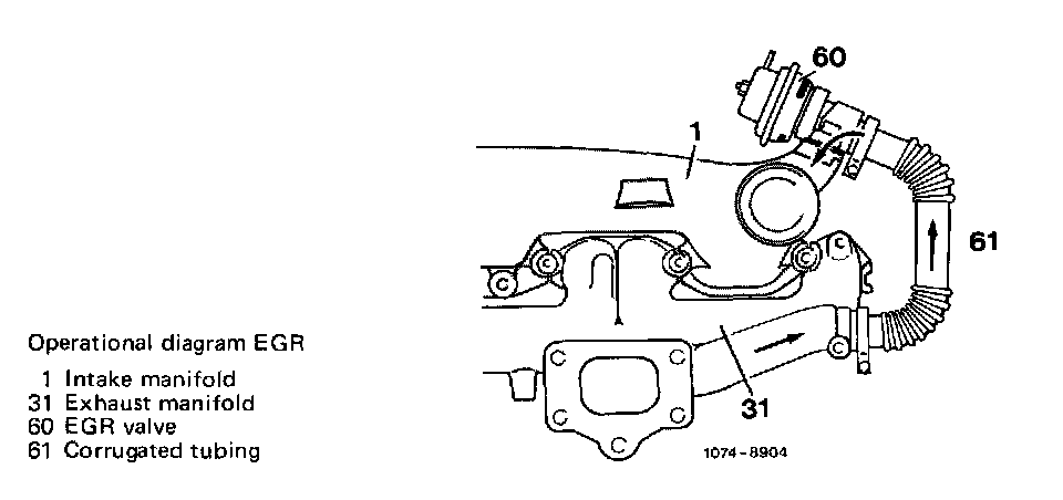 In USA version starting model year 1980 for California and starting model year 1981 for Federal and California, engine 617.95 is provided with exhaust gas recirculation (EGR).