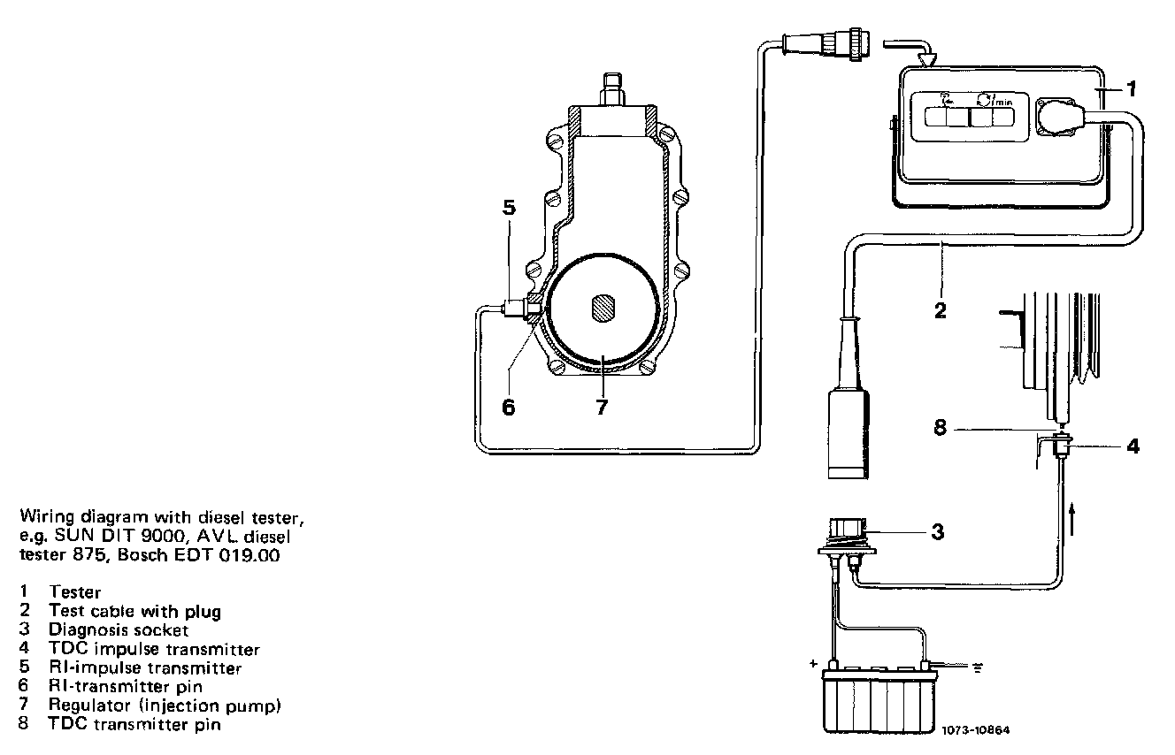 3. Start engine. Read RI-value (indirect injection timing) and idle speed 700-800 rpm on tester.