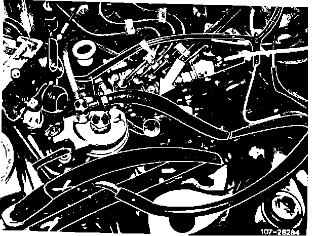 Since January 1984, a modified fuel expansion hose (arrow) was phased into production in the above models (hose length varies between model 123 and 126).. The identification number SKOX 6790 is molded into the hose. The part numbers remain unchanged: