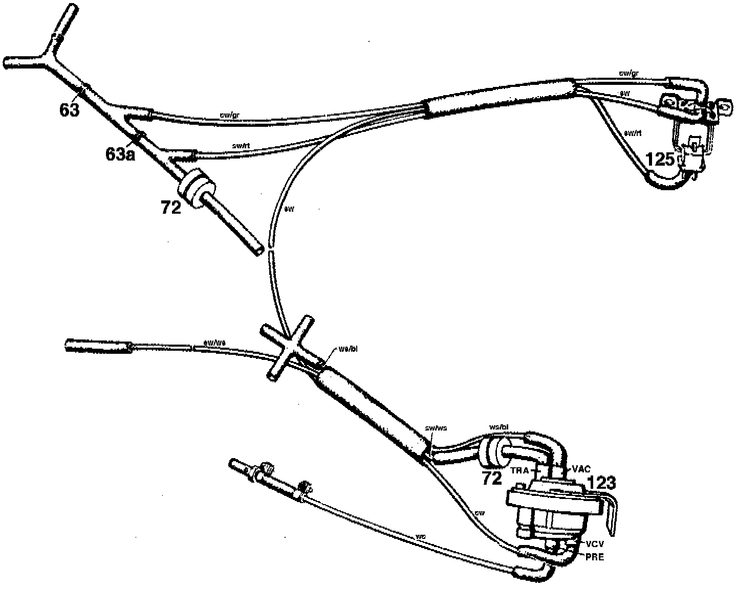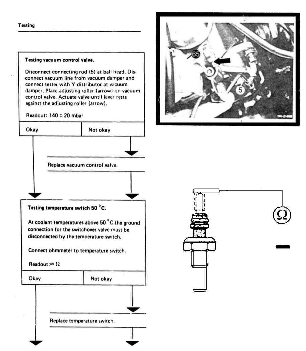 Vacuum control valve, vacuum transducer, electric switchover valve and temperature switch 50°C.